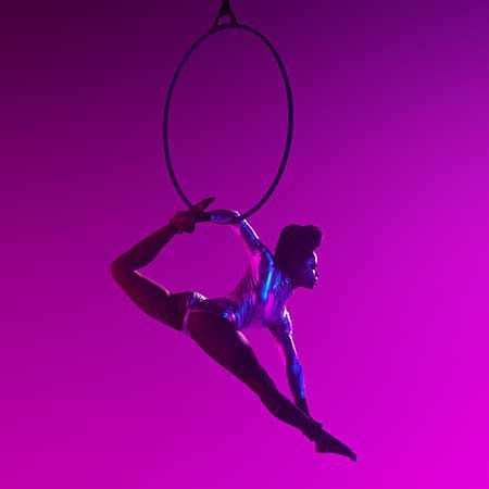 Our Los Angeles Aerial performer specializes in aerial hoops, silks, and a variety of other unique aerial props.