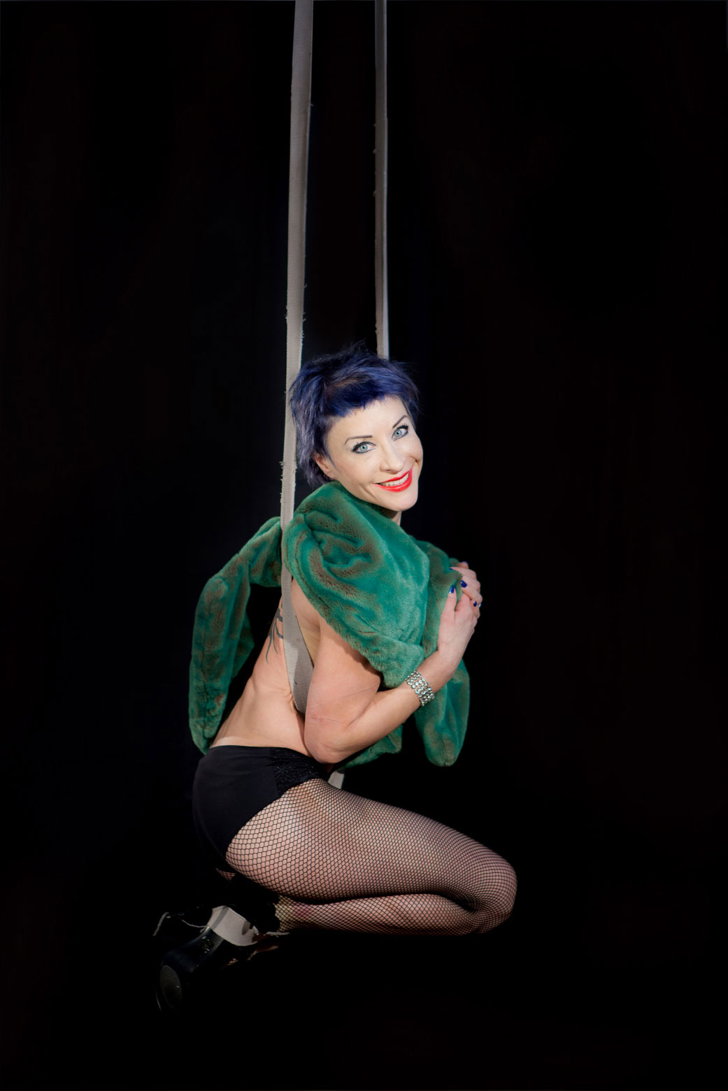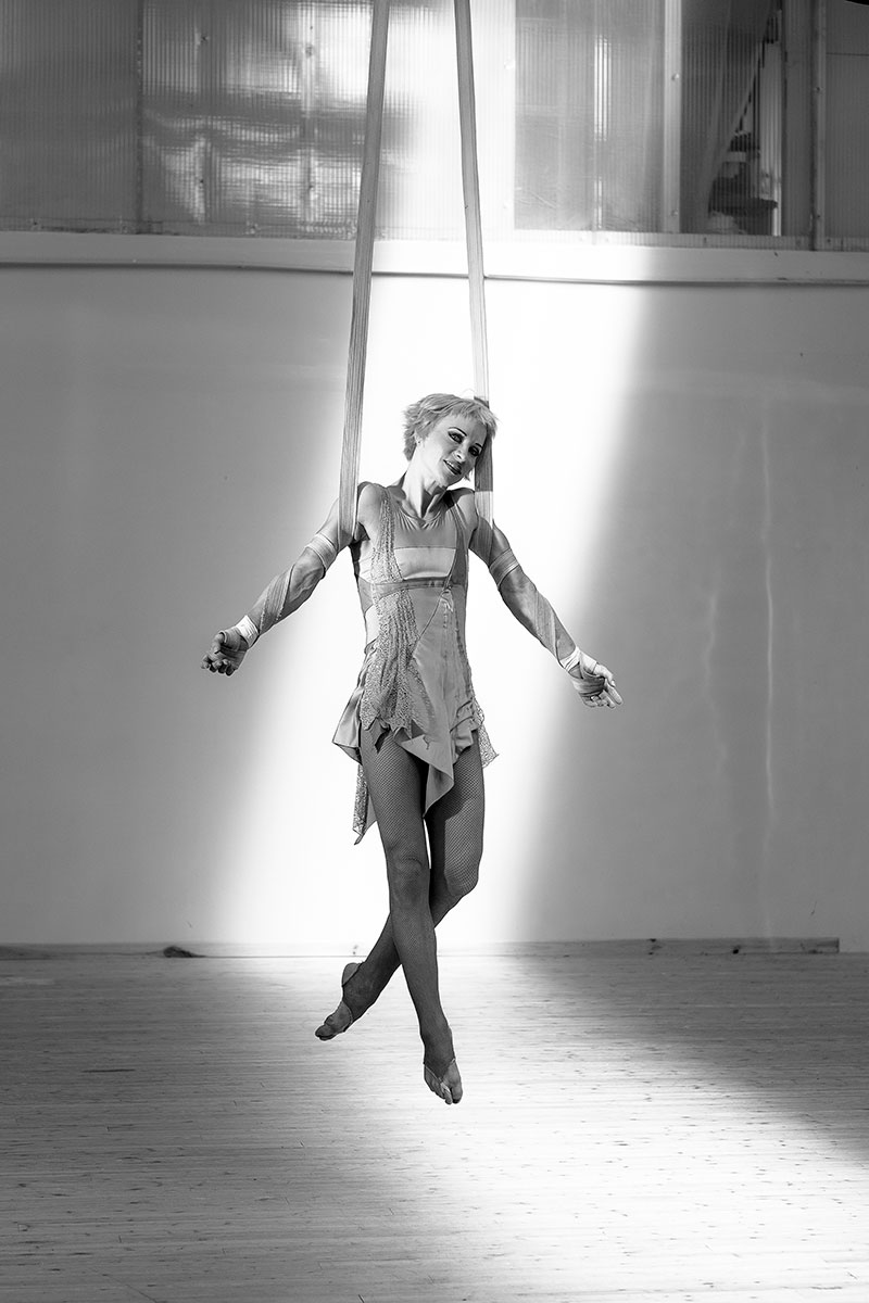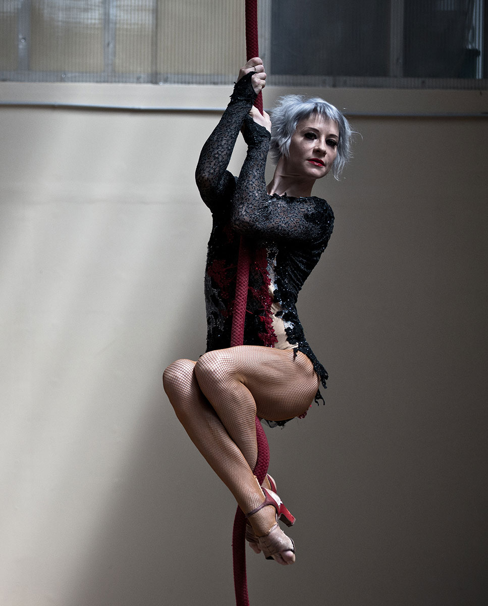 She eventually discovered the circus world, where after performing routines on stilts and as a fire-eater, she found her true calling as an aerialist, mastering ropes, silks, and straps.