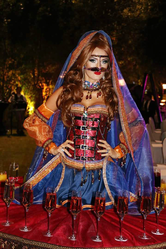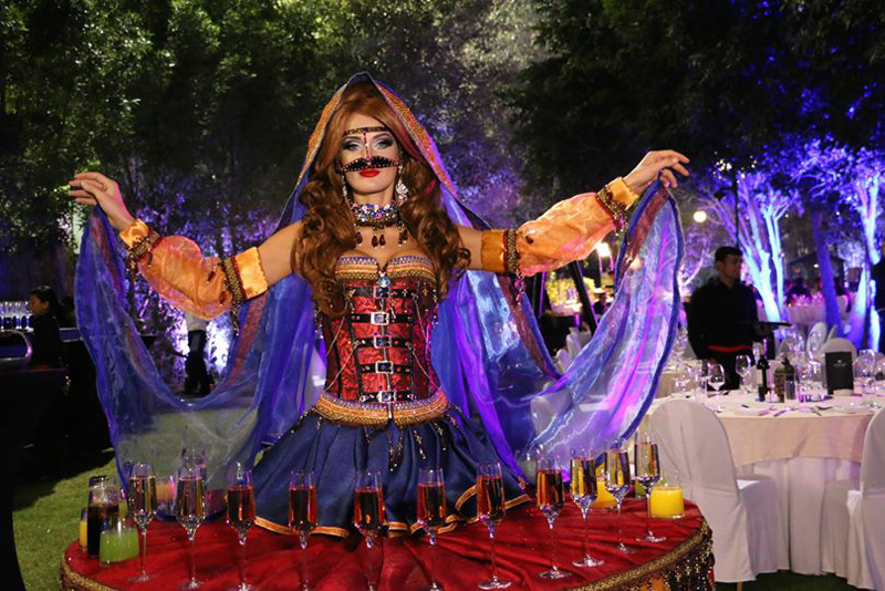 Ideal for drinks receptions and themed events, this living human table is also an excellent Arabian Nights entertainment option for product and brand launches, store openings, corporate events, fashion shows, and more. An unmatched crowd puller, our stunning hostesses are also popular for trade shows and exhibitions.
