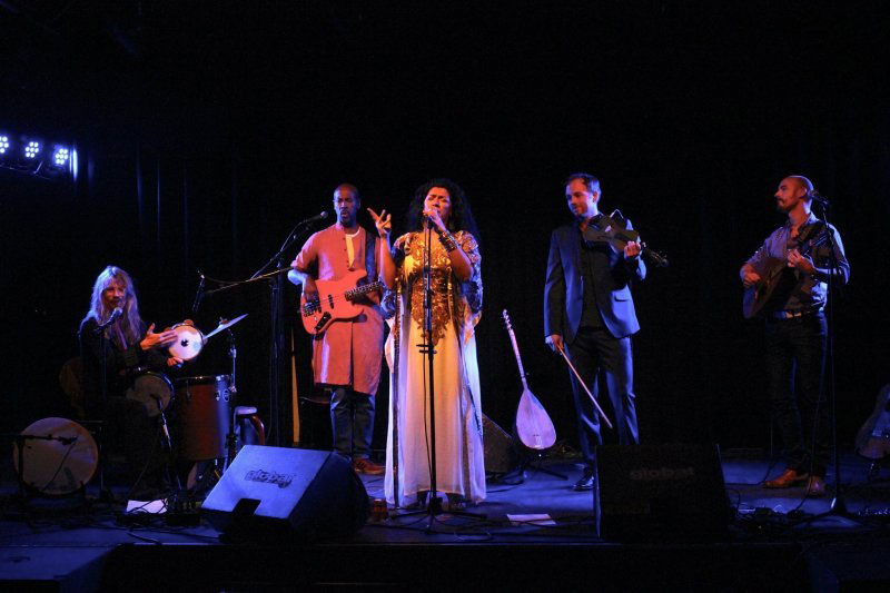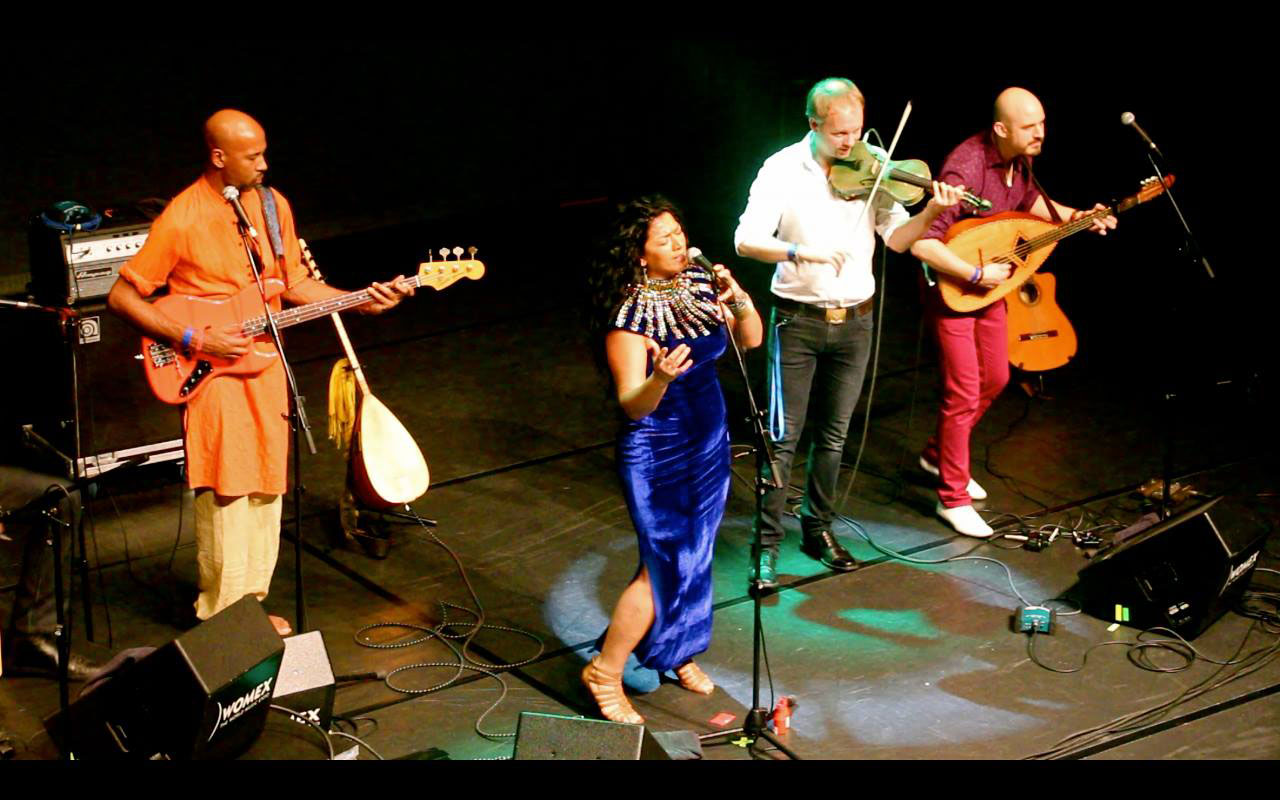 Led by the charismatic Iraqi-Egyptian singer Nadin, who fled war in Iraq for Sweden in 2001, the band’s music and lyrics tell the story of her journey of survival, exile, life, and rebirth.