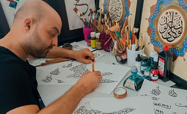 Based in Rome, this Arabic Calligrapher draws on deep roots that trace back to Mesopotamia—the cradle of writing—while embracing the artistic soul of Italy. Coming from a Sufi tradition, he transforms Arabic script into visual art through intricate calligrams and expressive pieces that transcend cultural boundaries.