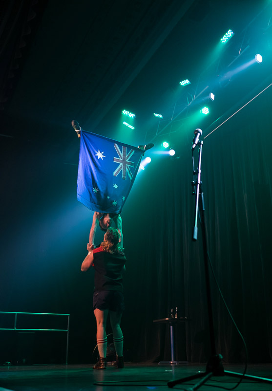 This beer-drinking, flag-waving duo is the walking embodiment of all Aussie expectations. Their brilliantly original Australian-themed act combines hilarious comedy with stunning top-quality hand-to-hand acrobatics. With drinks in hand and playful grins on their faces, these circus performers make the most amazing displays of strength and skill look effortless. Don’t be fooled by their goofy, off-the-cuff delivery—this acrobatic duo’s strength and talent are the real deal. Unpredictable, suspenseful, and ridiculous in equal measure, this Australian-themed act will give your audience an experience like no other.