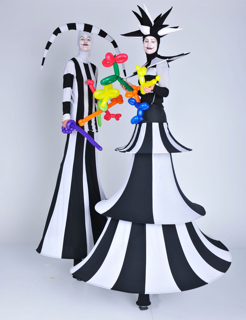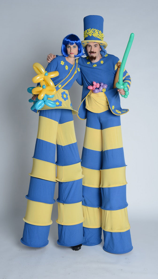 They're the ideal roving performers, blending humor, mischief, elegance, and incredible artistic skill to create mind-blowing entertainment. Perfect for family and adult events, these towering entertainers delight kids and make adults feel young again! Creativity knows no bounds when they're around!