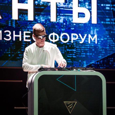 His interactive and customizable shows can feature the CEO or a Bride on stage, recording a snippet from them and looping it into a track.