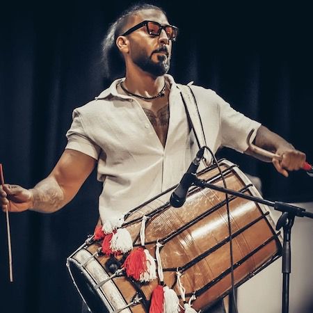 As an optional addition, he can incorporate traditional percussion such as tabla or dhol, blending live rhythms seamlessly into his DJ sets