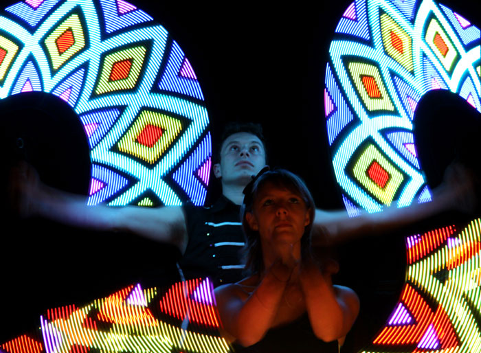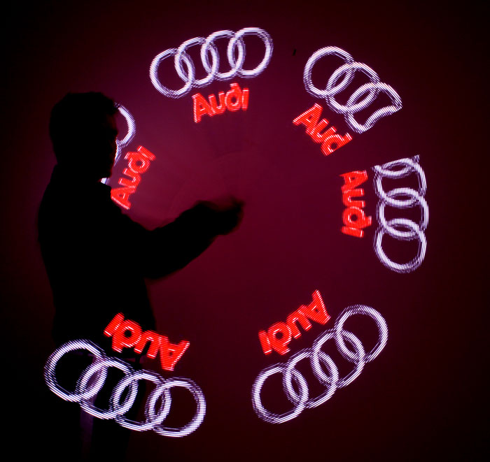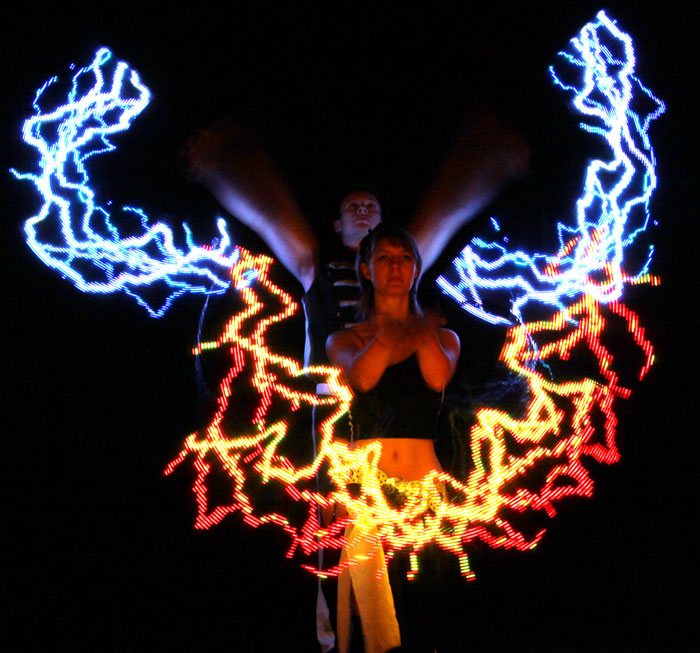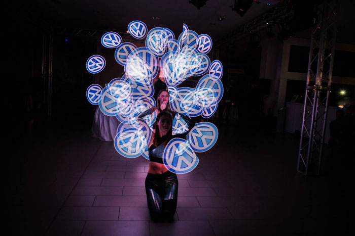 Fully customizable and brandable LED poi shows featuring logos, custom graphics, messages, and more