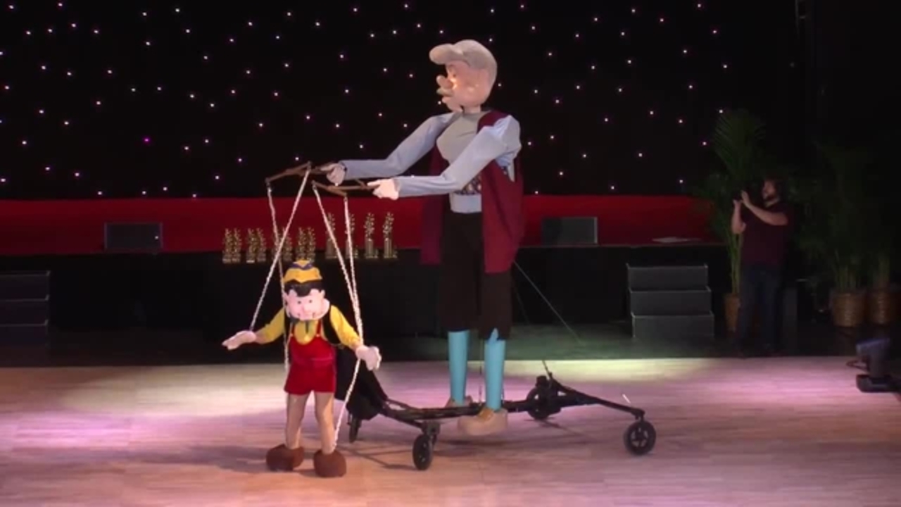 At the end of the act, the dancer behind the mask is revealed as he transforms into a real boy, moving and grooving even more with his newfound life as a human. In addition to the Pinocchio act, our puppeteer can create completely customized puppets from scratch in just four weeks! Puppets of your wife, husband, best friend, or sibling can be crafted to look exactly like them, making it perfect for adding a personal touch to any event or occasion.