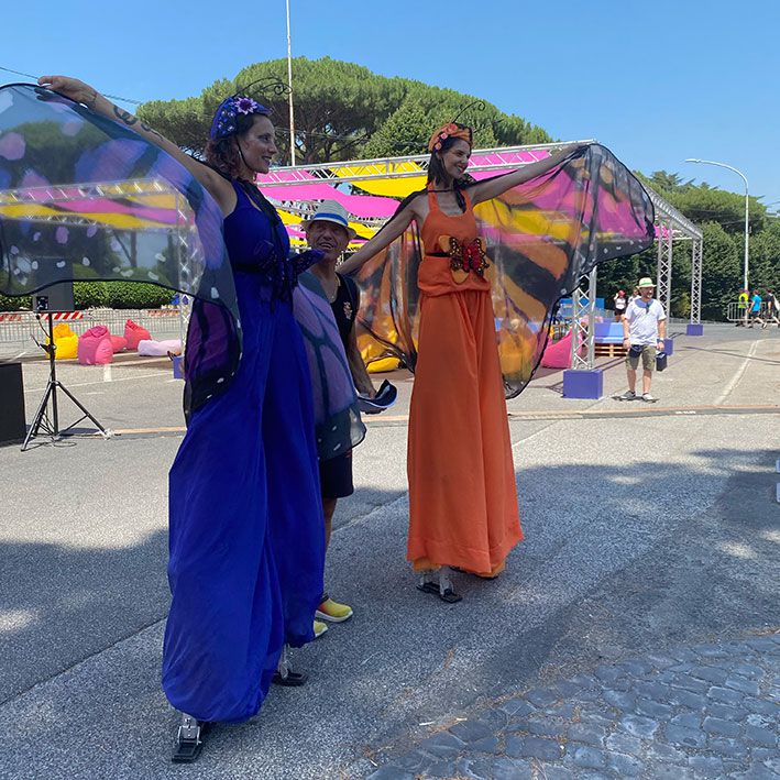 These butterfly stilt walkers are perfect for any event with an enchanted garden or festival theme