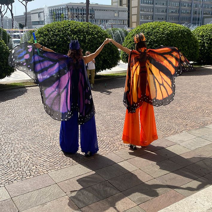 Towering above guests, these eye-catching giant butterfly stilt walkers will stun everyone they flutter by