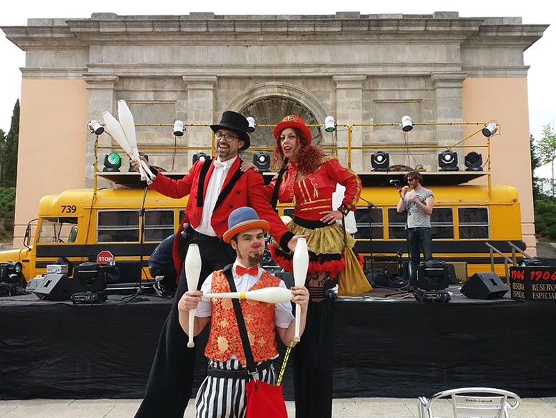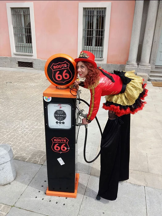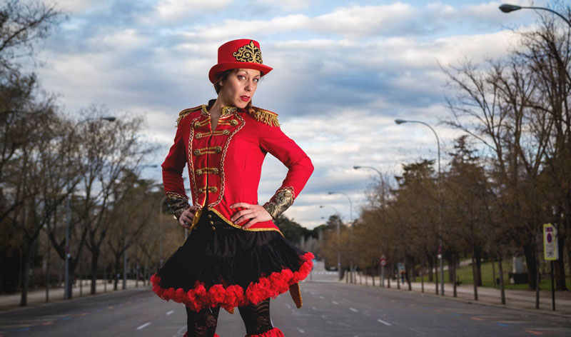 Beloved by both kids and adults, our circus-themed stilt walkers offer a stunning photo opportunity. Wearing red cabaret circus costumes and perched on stilts, these circus and street entertainers stand out from the crowd. They quickly capture the attention of everyone around, drawing large crowds.