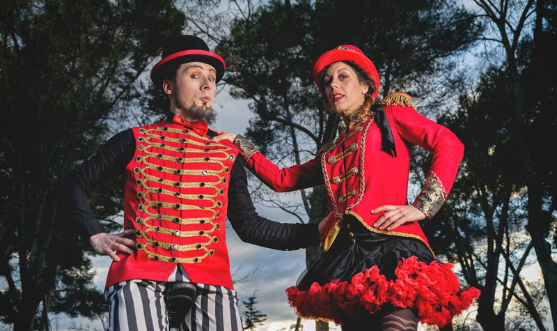 Fully interactive, this circus walkabout act features two skilled and versatile circus and street entertainers. Our circus-themed stilt walkers are a popular meet and greet act. They can also roam around your venue, mingling with your guests and entertaining them with various activities. Extremely friendly, they quickly make friends, especially with kids.