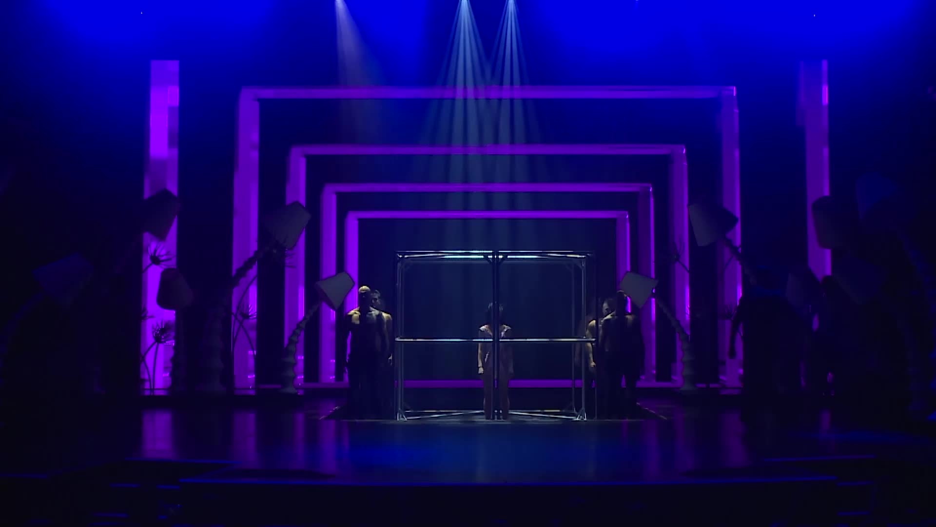 Set on a cube structure that expands and contracts during the show, our cage dancers perform synchronised moves set to music