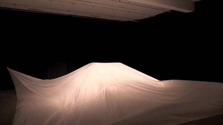 This air sculpture, featuring waves of fabric powered by fans to appear as though they move on their own, is futuristic and engaging. It can definitely make a dramatic entrance for a person, product launch, or car reveal.