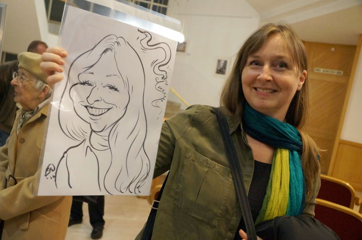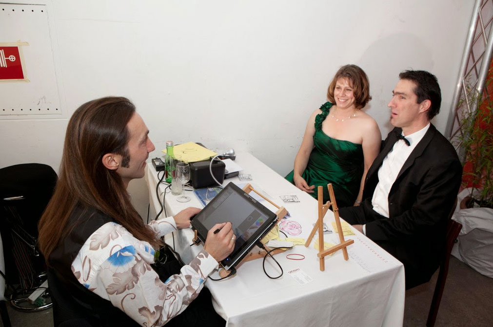 A fun and casual entertainment choice, Bernd typically starts by mingling with guests, making them laugh with witty jokes before beginning to draw them. While he's drawing one person, 4 or 5 others are usually watching and having a great time - it's a fantastic way to break the ice!