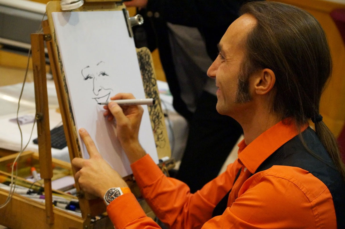 With a master's degree in fine art, Bernd has created thousands of caricatures at corporate events, product launches, event openings, weddings, private parties, and more.