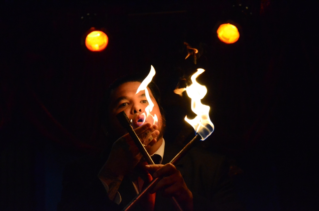 Carnival Stunts - blockhead, light bulb eating, and fire-eating;