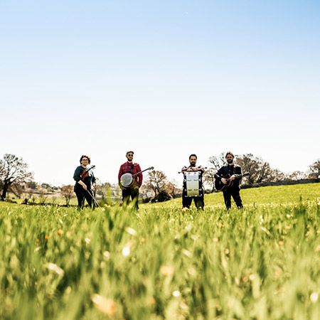 4-member band featuring a vocalist and percussionist, violinist, banjo player, and acoustic guitarist