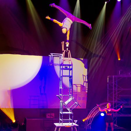 Elevate your event with our chair balancing act, featuring incredible strength, balance, and coordination.