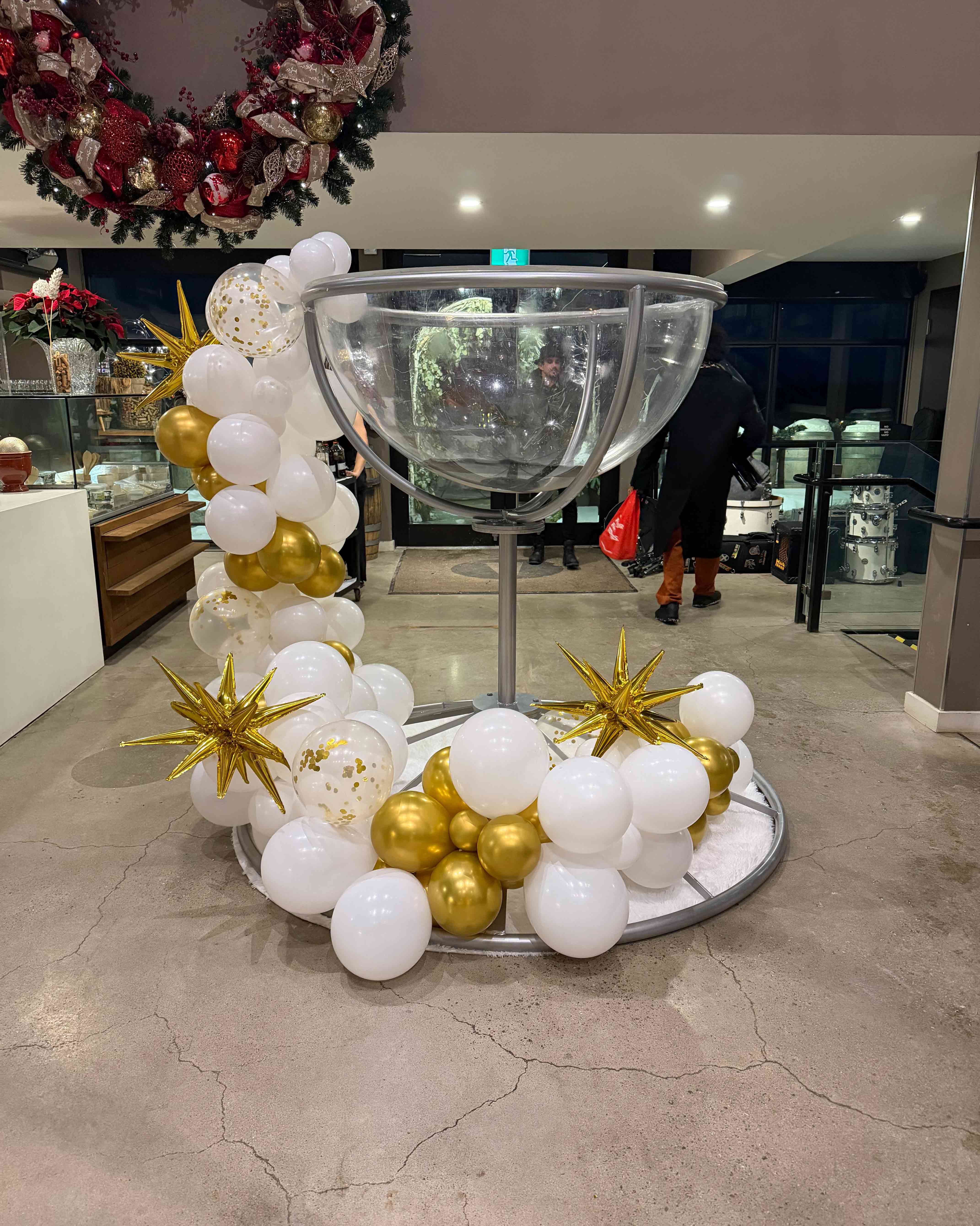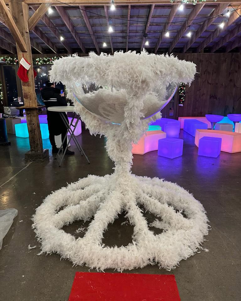 The giant glass can be decorated to match your event's theme, creating a centerpiece for your soiree where performers can serve drinks.