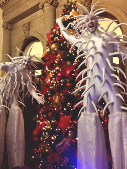 Bring yuletide cheer to your Christmas or Winter entertainment with our sensational Christmas-themed performers that include a variety of walkaround characters like animated Christmas trees, Santas, snow fairies, and many more to choose from. Our fantastic stilt acts will captivate from the moment they arrive at your event, towering over guests and providing Winter cheer with whimsical moves. Our roaming performers will engage guests of all ages, ensuring they have a constant smile on their faces. Our stilt walkers are highly skilled in performance art production, and when combined with their unique characters, their stilt acts truly come to life, ready to delight and mystify.