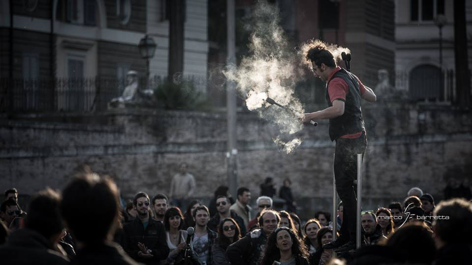 Since then, Shay has showcased his diverse skills and street theatre performances to great acclaim throughout Italy. In his shows, Shay combines circus acts like fire juggling and balance with incredible humor, high technical content, boundless energy, and lots of audience interaction.