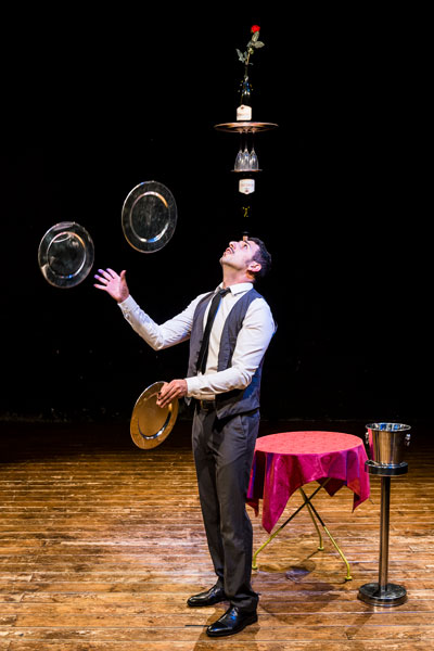 In the following years, this ambitious performer took on Chinese pole and dance, refining his free-scale balancing and juggling techniques while also learning the dangerous arts of knife and axe throwing.