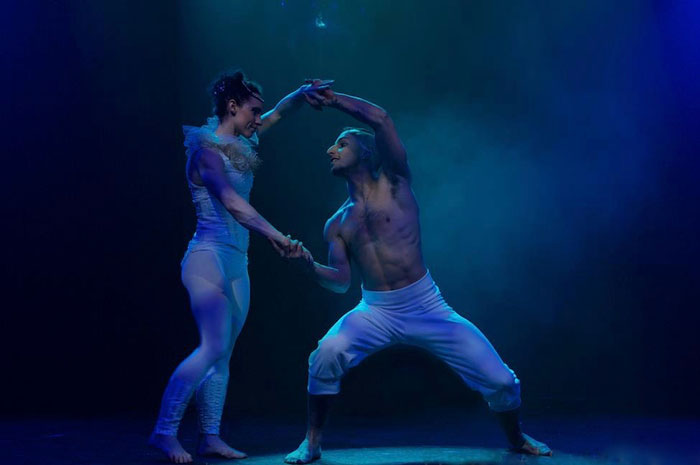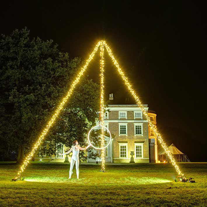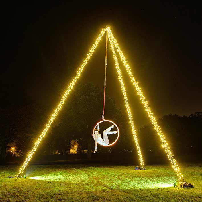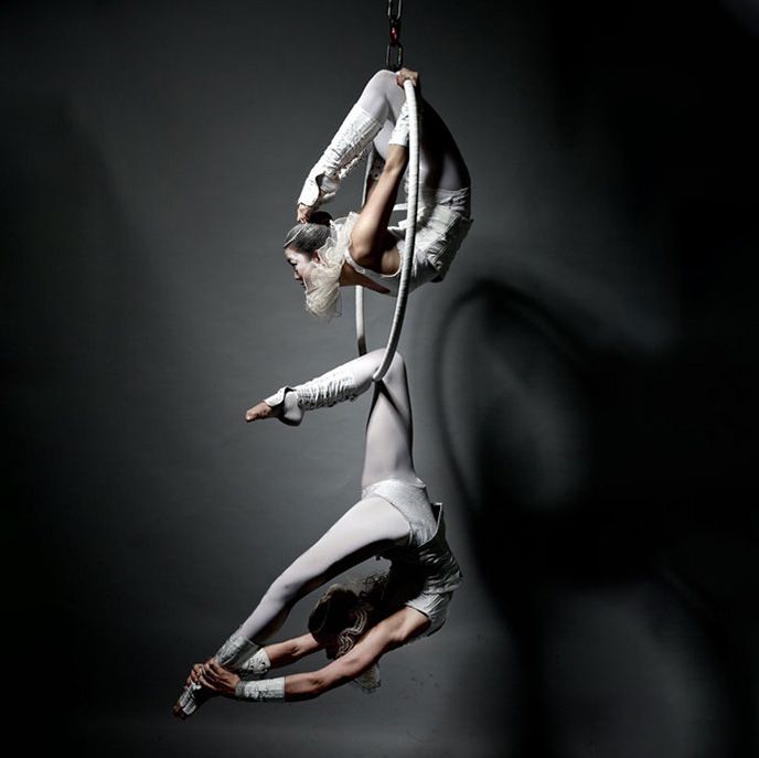 - Aerial: Two synchronized silk performers are sure to impress as they twirl together, telling a captivating story with their body language. They can also incorporate an aerial hoop into their act, adding even more visual impact. The company can provide their freestanding rig for venues without one.