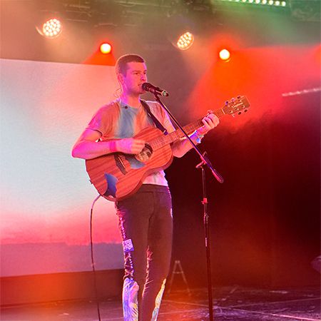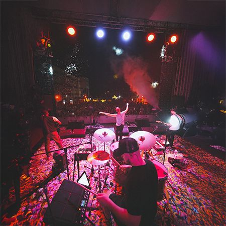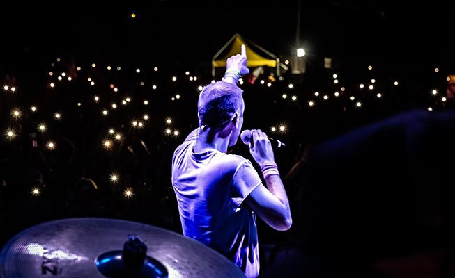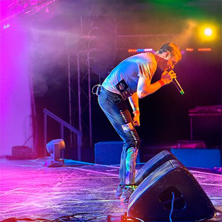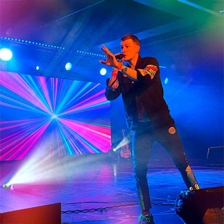 Charismatic frontman delivers a stadium-like experience with energetic performances, engaging audiences with his dynamic stage presence and vocals