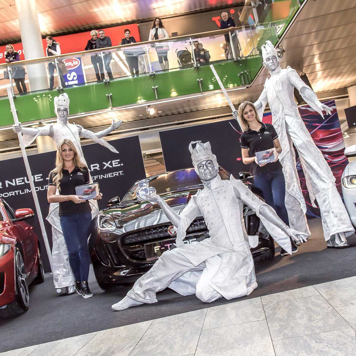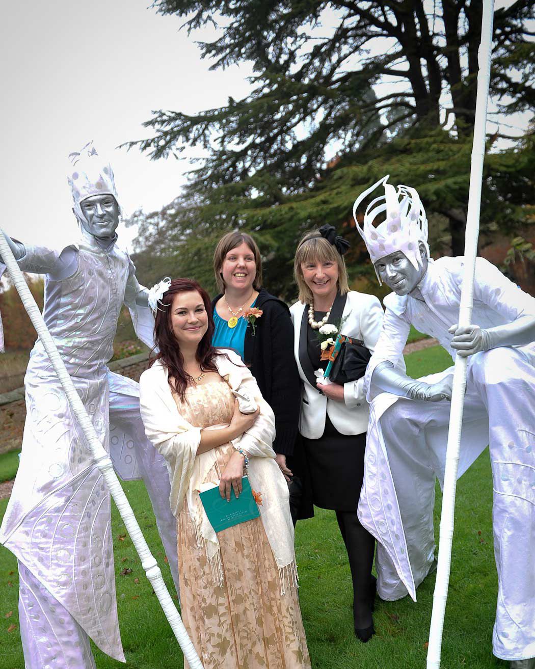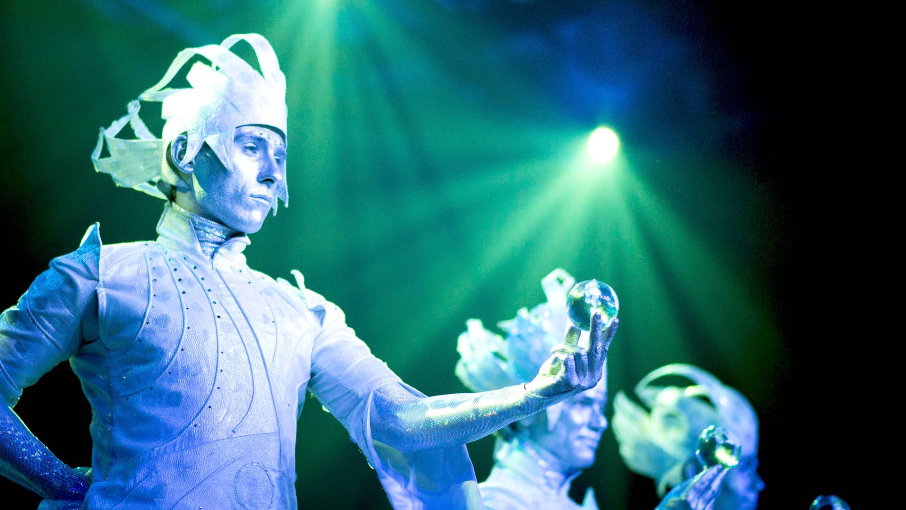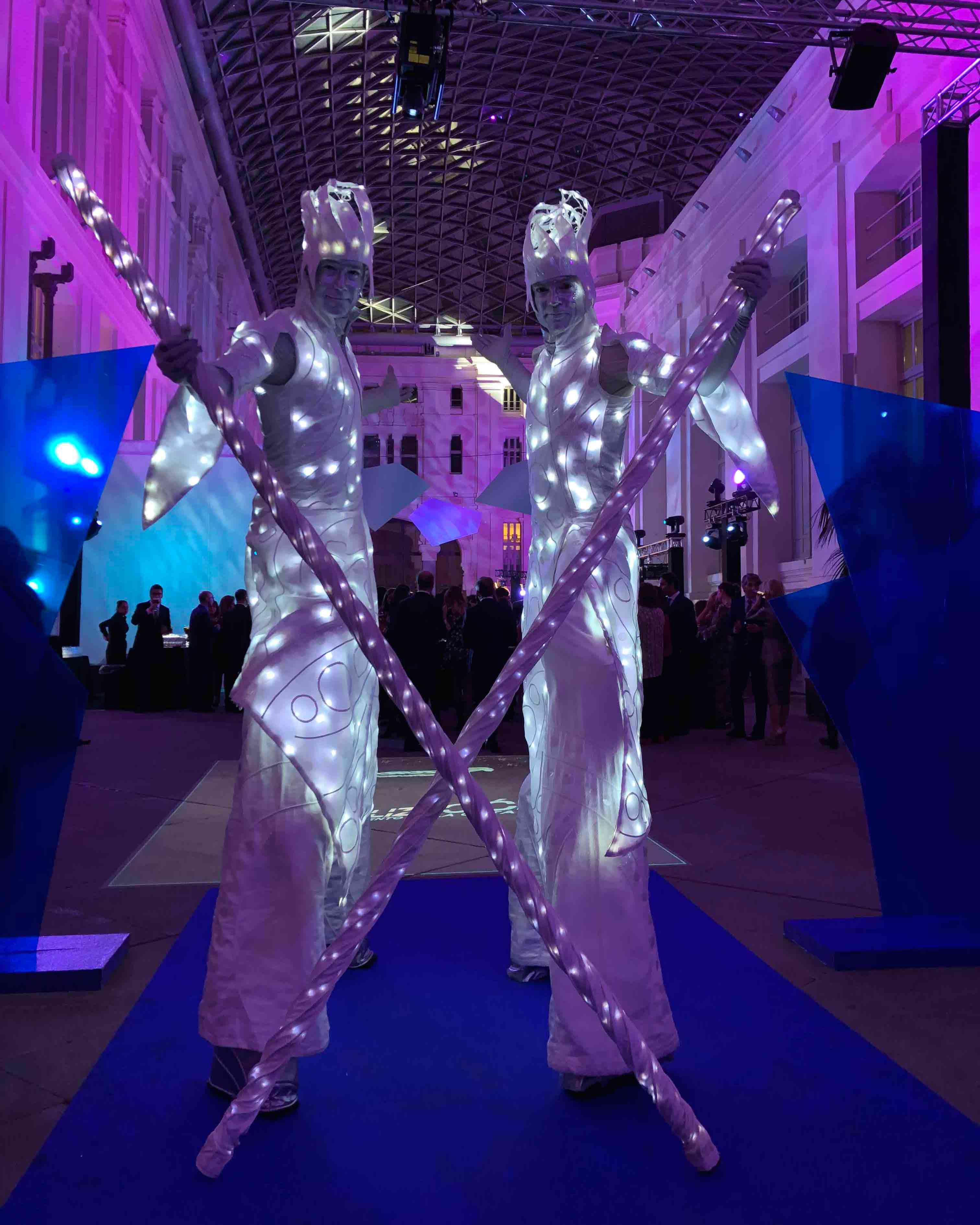 Glass balls seem suspended in mid-air, unusually tall characters freeze and move in mysterious synchrony, and a magical soundscape surrounds them all. Calvos can perform as either ground-level crystal ball jugglers or stilt characters—or both—in the same booking...