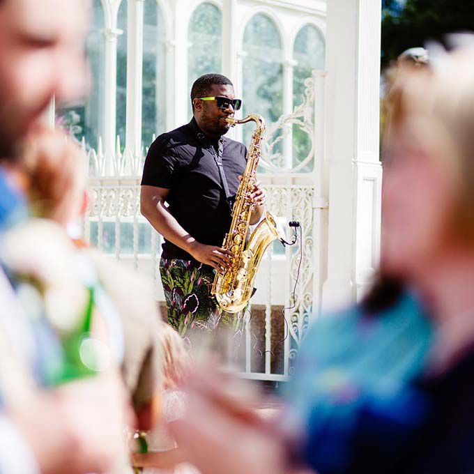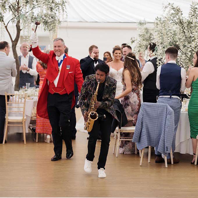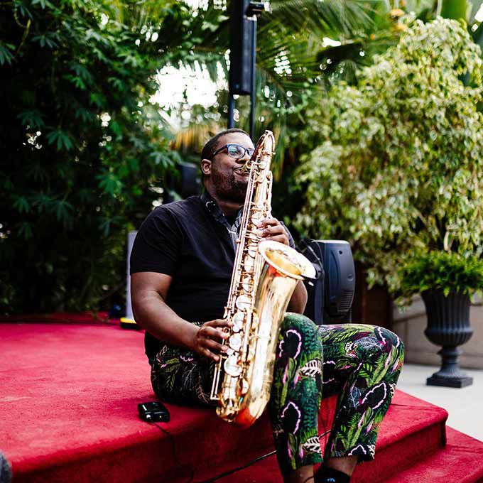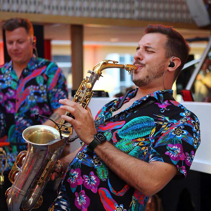 Our talented roaming brass musicians can play a variety of instruments, including the trumpet, saxophone, trombone, and more.