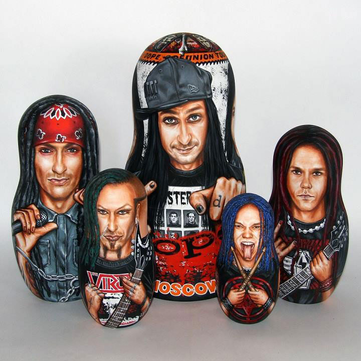 A huge fan of sports and music, this Russian dolls painter loves coming up with design ideas for major sporting events like the World Cup and other championships, as well as customized illustrations like those he created for the Red Hot Chilli Peppers.