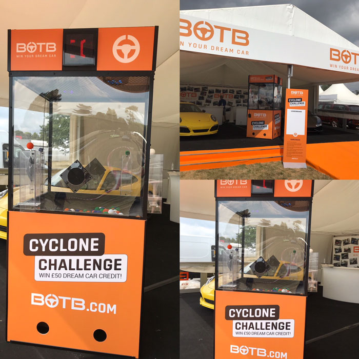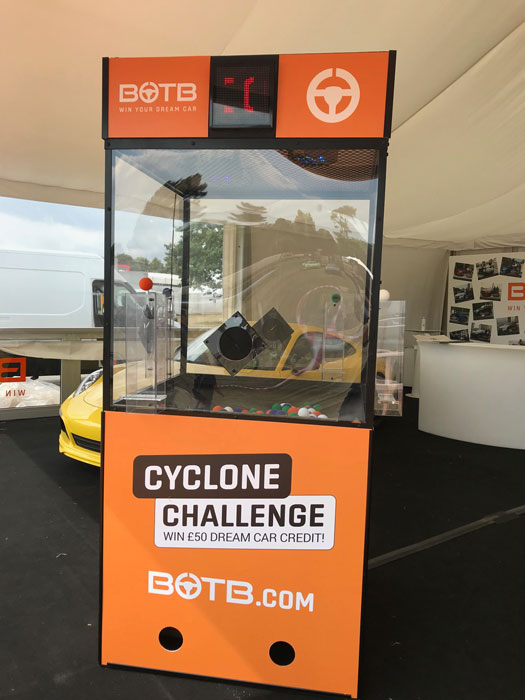 Top-notch unique entertainment, the cyclone first hit the mainstream when its creators showcased it on Dragons' Den in 2011. Since then, it’s become a favorite interactive gaming challenge for corporate events and exhibitions, and has also been featured in numerous TV game shows.
