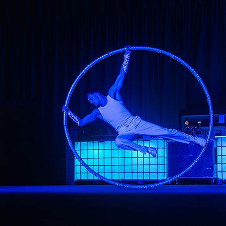With over a decade of circus experience, this cyr wheel artist brings skill and creativity to every showstopping performance