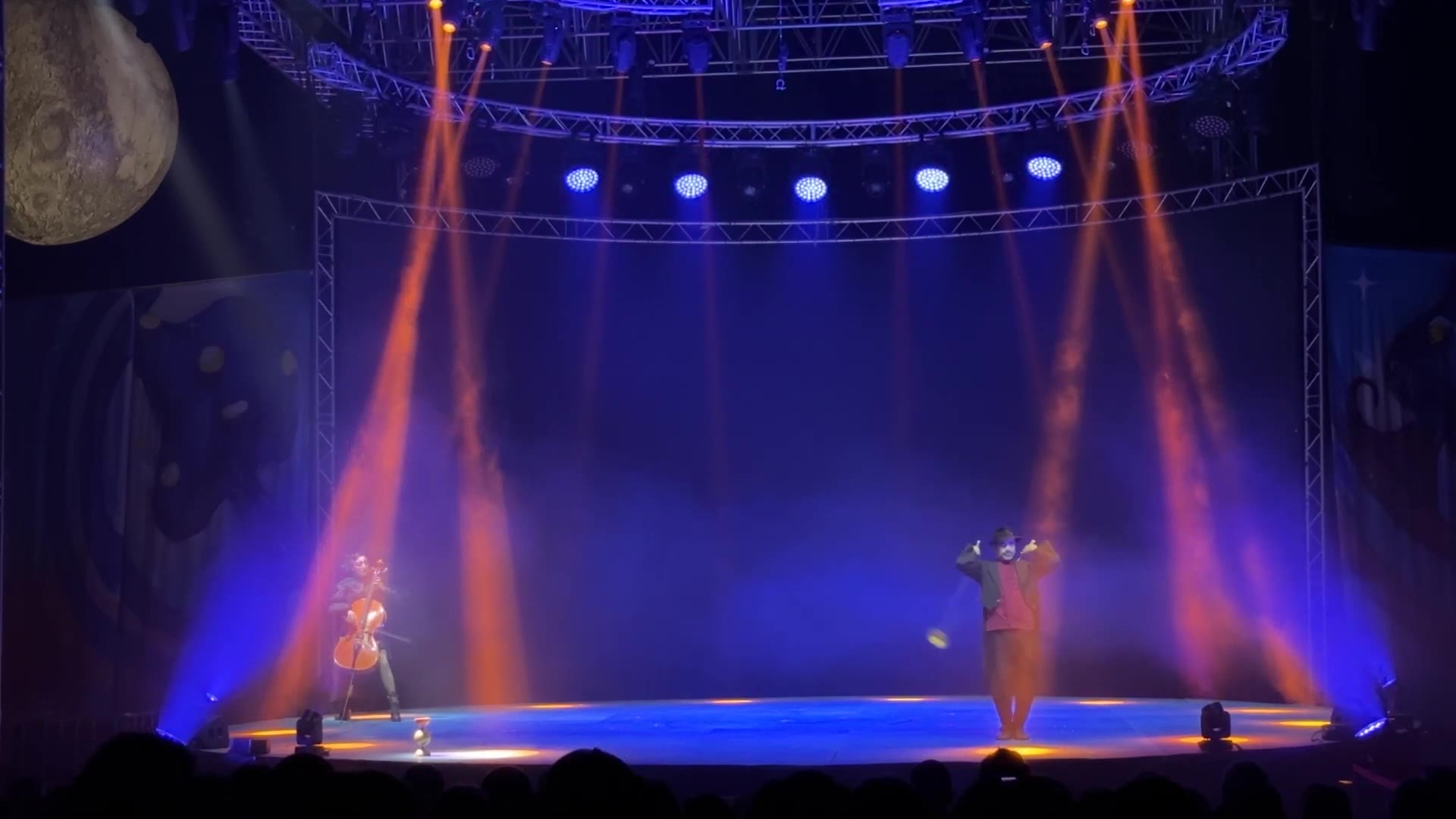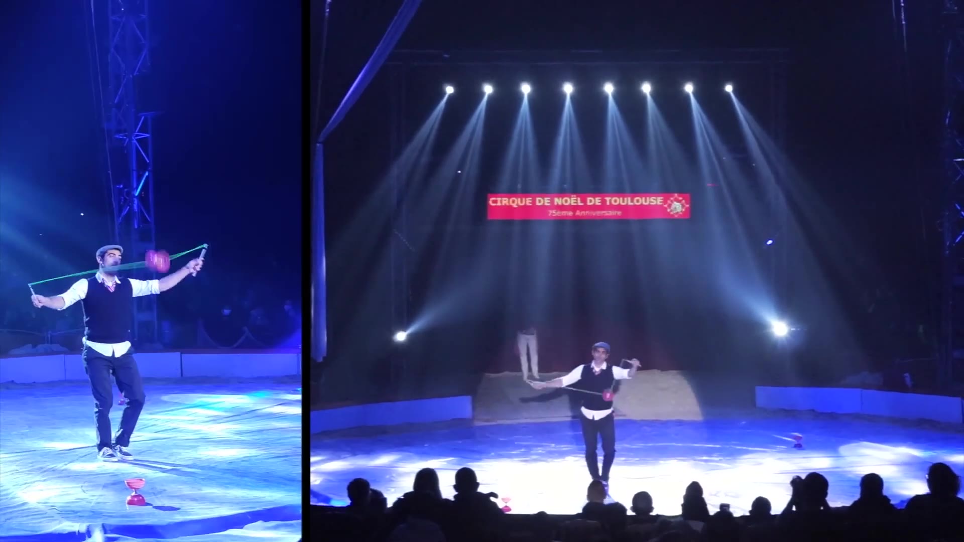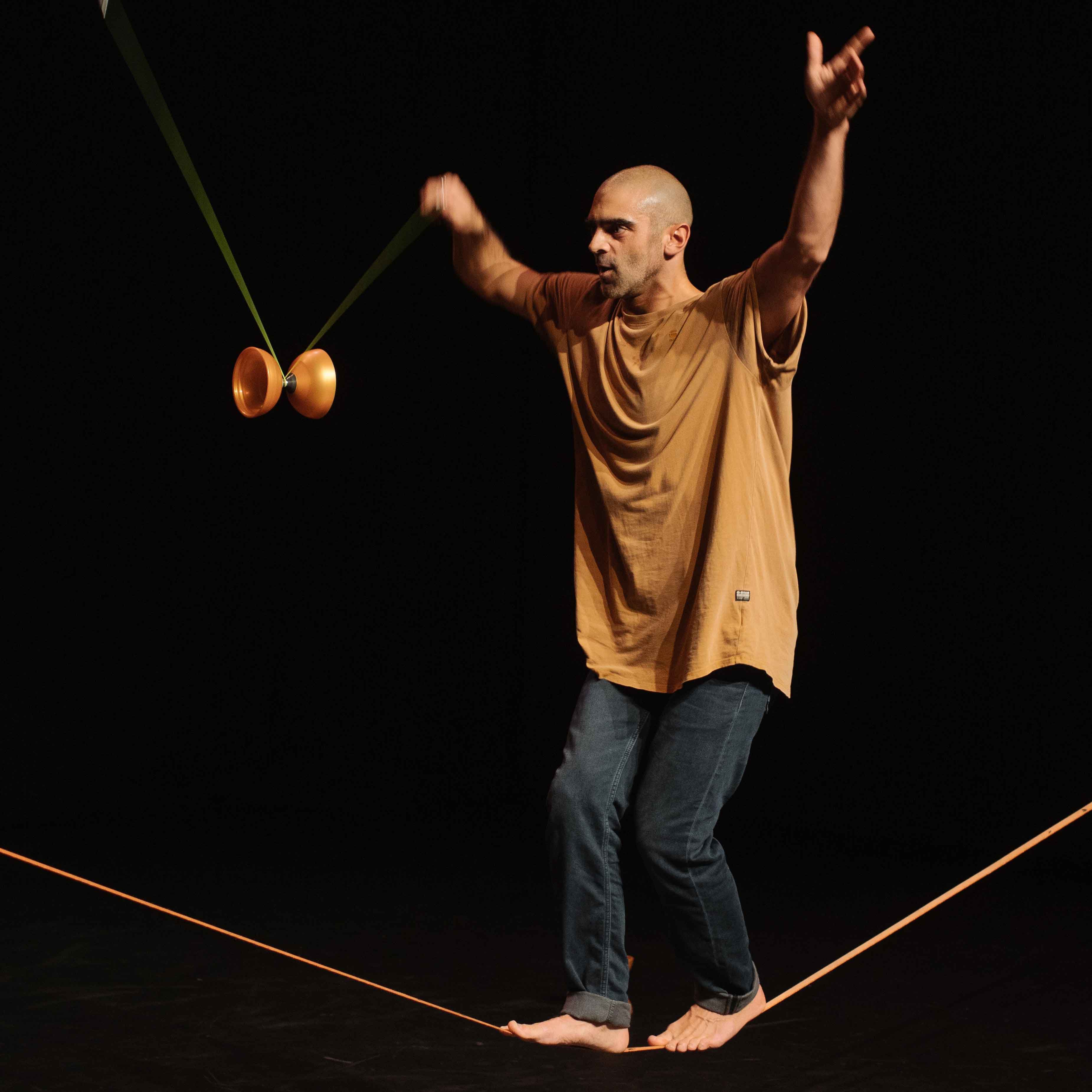 This performer blends expert juggling skills with high-energy routines, performing with multiple diabolos at once and showcasing complex tricks