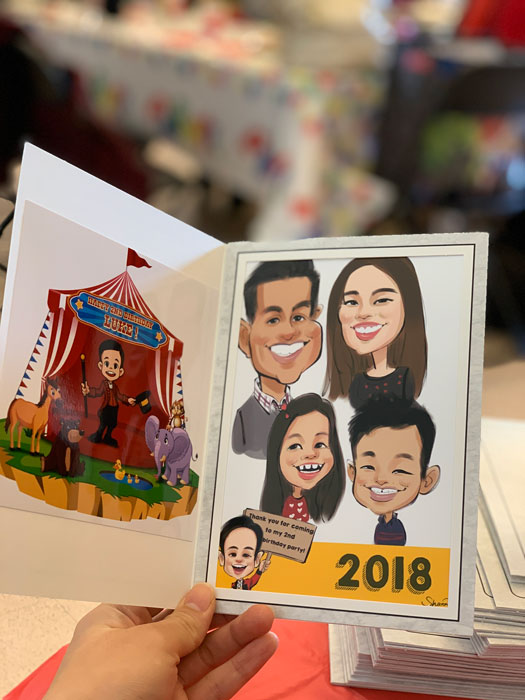 The live process is broadcast on a large screen so audiences can enjoy it as a performance, while the drawings make great giveaways for guests.