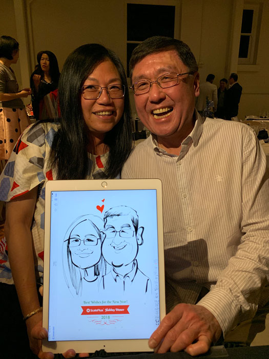 This event caricaturist has nearly twenty years of experience creating one-of-a-kind digital portraits in San Francisco, Shanghai, and Singapore.