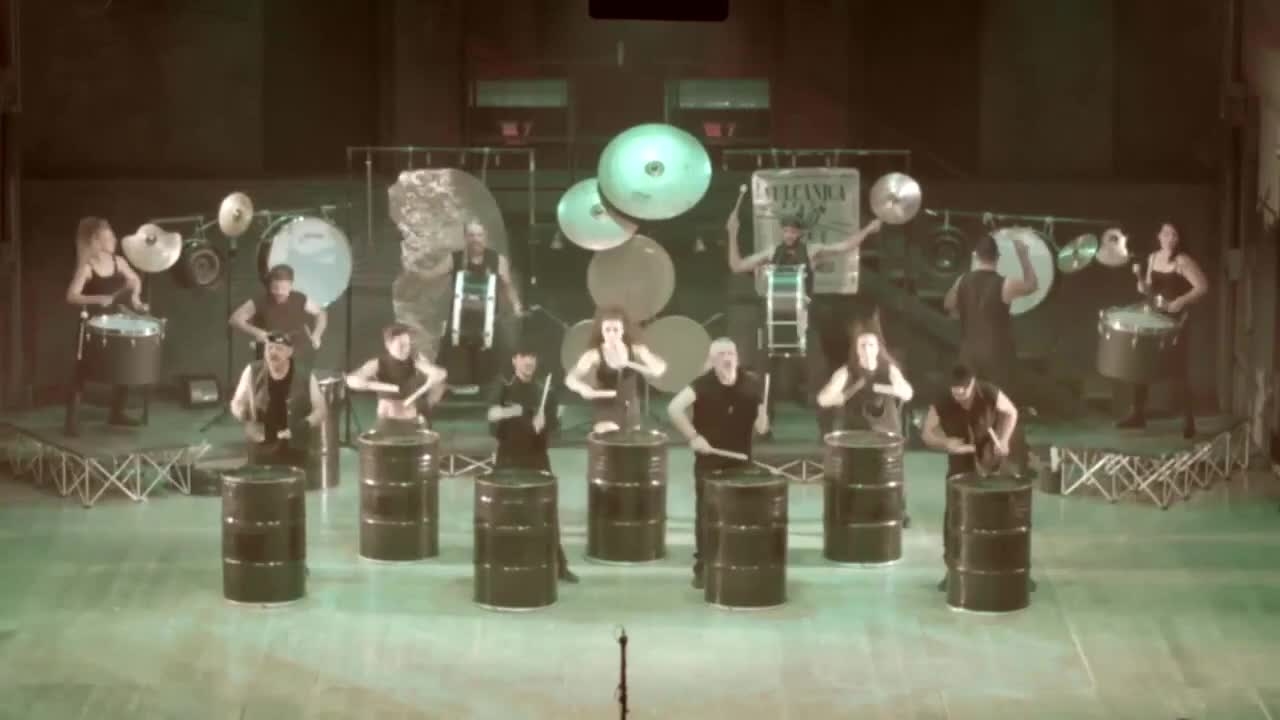 An Italian group of percussionists using industrial drums, featuring plastic drums, crates, rims, doors, hoods, sheet metal, and recycled materials.