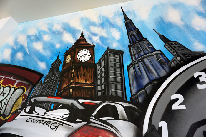 These incredible Dubai Graffiti Artists have worked on a wide range of events, venues, and clients such as Ferrari World Abu Dhabi, DC Shoe Company, Shampooch UAE, YKM Store, Deals On Wheels UAE, Abu Dhabi German School, AtlasPark Shopping Centre, and the American University of Sharjah. Their work spans custom murals, retail and restaurant decor, and even live clothing customization in-store.