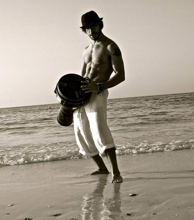 The Dubai Percussionist owns innovative instruments like electric bongos and an electric hang drum. Click here for his Hang drum profile.