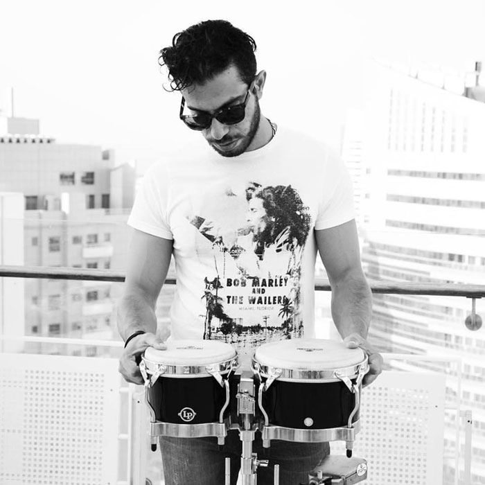 The Dubai Percussionist has a range of instruments, diverse skills, and abilities, and can fully tailor his performance to suit any event. His experiences as a freelance musician include playing drums with Jazz bands, bongos in nightclubs, weddings, private events, and more.