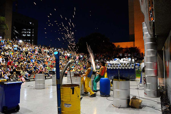 Featuring a high-impact, energetic drumming stage show starring our engaging percussionists, this is entertainment at its best, and is a great way to raise awareness at your event through the lively performance of an incredible junk band. Our drumming group is available to book for events in Madrid and throughout Spain, and is ideal interactive entertainment for festivals, team-building workshops, themed events, family days, theaters, children’s events, and more. Our educational drumming ensemble can offer musical shows in Spanish, English, and Arabic.