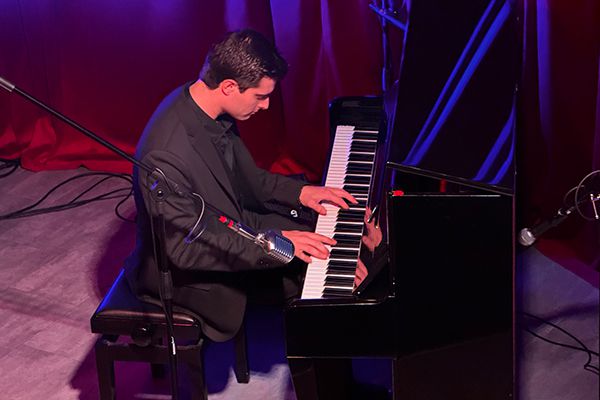 Originally from Italy, he can also perform Italian songs, alternating between piano solo pieces and singing with piano accompaniment