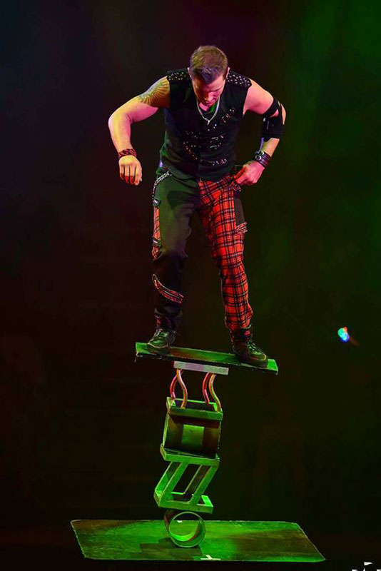 An exhilarating rola-bola circus act, our Extreme Balancing Board Act is jam-packed with daredevil maneuvers and astounding balancing feats.