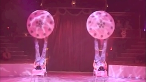 Duo specializes in acrobatics using dancing umbrellas and other props, which they spin at high speed with their feet and hands.