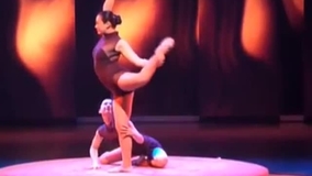 Breathtaking performance showcasing incredible flexibility, strength, and coordination by two perfectly synchronized acrobats