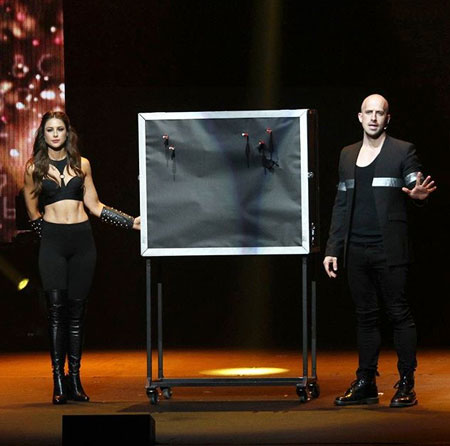 Since then, she has toured with The Illusionists from Broadway, performing to sold-out audiences all over the world. Touring alongside many international and world-renowned illusionists. Now performing as a solo act, her sultry and thrill-seeking crossbow act leaves hearts pounding as she defies death and fires crossbows at her body!