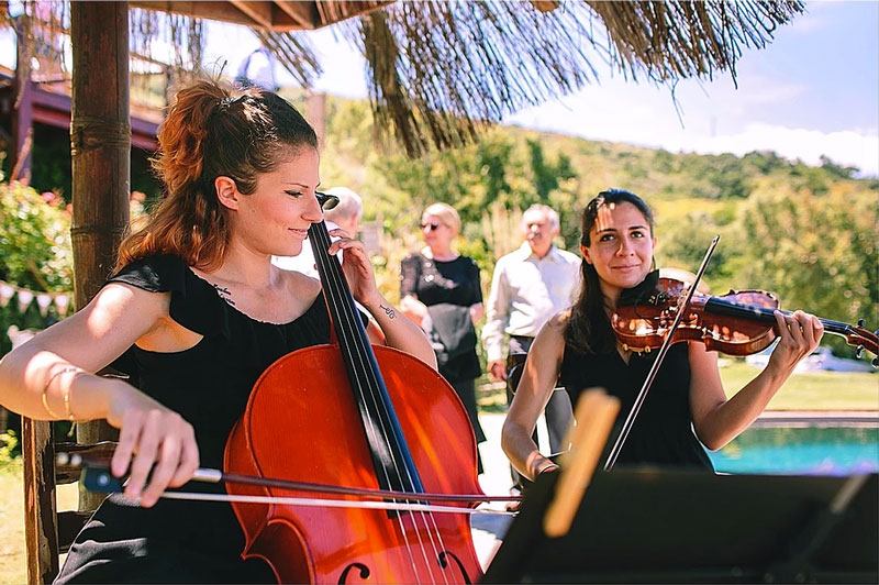This Greek string duo’s repertoire spans classic string music and contemporary hits. Our versatile musicians can enchant classical music lovers with melodies by big names like Bach, Tchaikovsky, and Mendelssohn, but they also perform modern sounds. Some pop songs and contemporary hits they usually play include ‘With or Without You’ by U2, ‘Marry You’ by Bruno Mars, and ‘Stairway To Heaven’ by Led Zeppelin, to name a few.
