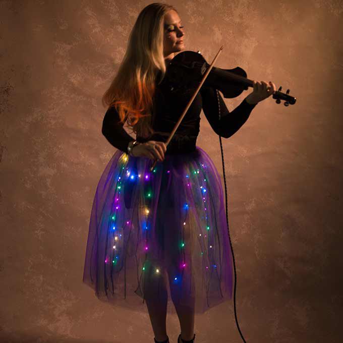 Our female LED violinist is an expert at setting a fun ambience for private parties, corporate events, clubs, hotels, cocktail parties and weddings