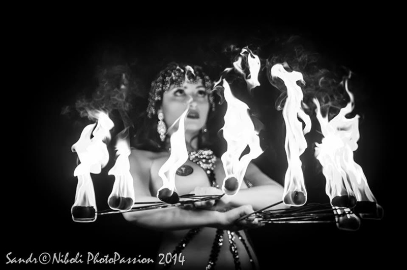This burlesque fire dancer uniquely combines burlesque entertainment with fire manipulation. An exceptional fire eater, she integrates various fire tricks with sensual choreography, complemented by a variety of costumes and props.
