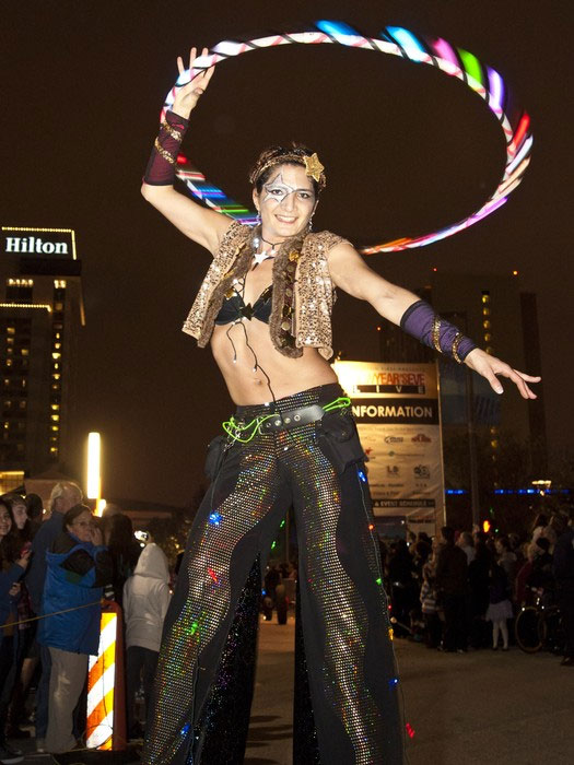 Performs with poi, hoops, staffs, or fans